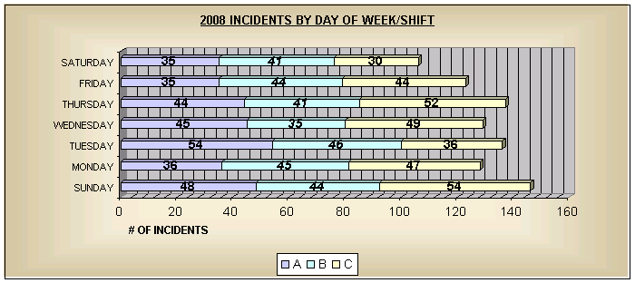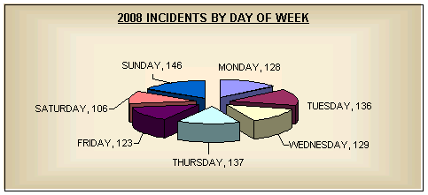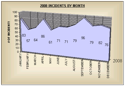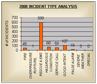 2008 Fire Department Roster 2008 Apparatus Report 2008 Statistical Data & Graphs - Incident Type Summary - Property Use Summary - Incidents by District - Time of Alarm Summary - Incidents by Day of Week - Incidents by Day of Week/Shift - Incidents by Month |